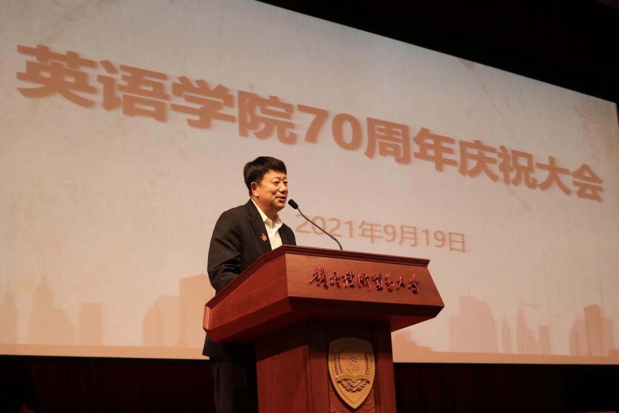2021年9月19日14:30,水果派解说 70周年庆祝大会在图书馆报告厅隆重举行。老领导、老教师代表、校友代表,以及在校师生两百余人欢聚一堂,畅叙师生情、母校情,共庆贸大、水果派解说 70华诞,祝愿贸大、英院继往开来,再上层楼。