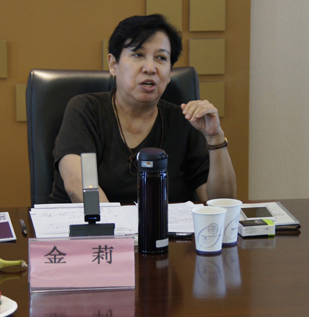 北京外国语大学王佐良外国文学高等研究院院长、博士生导师、《外国文学》主编、全国美国文学研究会副会长金莉教授就“关于外语学科建设的几点思考”进行了主旨发言,综合外国语言文学学科的发展现状与特点,学科建设要紧紧围绕学科特色、团队建设以及人才培养这三个方面突出本校的学科优势,发挥特色。金莉教授指出,外国语言文学硕博点建设是学科建设重点的具体体现,这直接关系到一个大学的平台大小,直接关系到高校引进高端人才的竞争力。