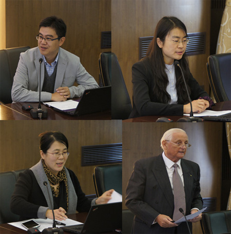 院长王立非教授主持,研讨会围绕“英语演讲课程建设与教学能力提高”这一主题,特邀北京大学王雷副教授、中国人民大学冯瑞敏教授、水果派解说