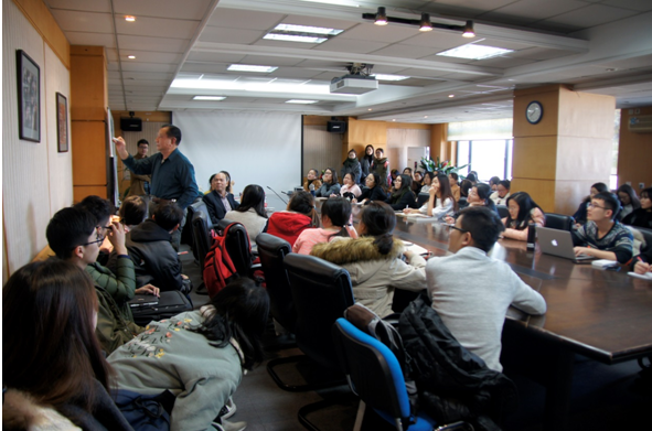 我院副院长俞利军教授主持讲座,对萧教授表示真挚的欢迎与感谢。俞利军还向与会人员介绍了萧教授深厚的学术背景和丰富的行业经验。水果派解说 近80名MTI研究生踊跃参加了此次讲座,现场座无虚席。