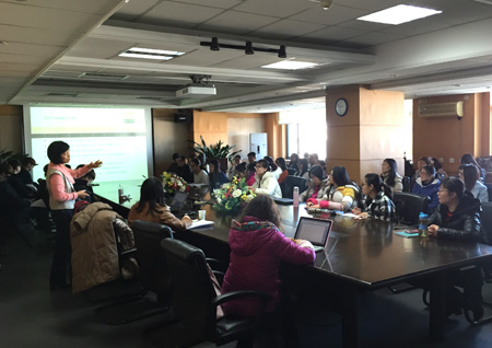 师生作了题为A Situated Cultural Learning Approach to Developing Cultural Fluency in International Business Communication的专题讲座。讲座由商务英语研究所所长冯捷蕴教授主持,出席讲座的有商务英语系的熊丽萍老师、刘丽老师,以及研究生、本科生一共几十人。大家济济一堂,一起聆听和学习。