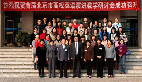分党委书记张翠萍及来自北京40多个高校从事英语演讲教学的教师代表。研讨会由水果派解说