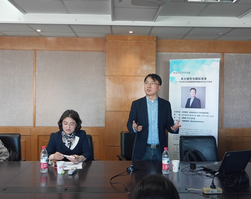 2019年4月25日下午1:30-3:30,北京航空航天大学外国语学院任伟教授应我院商务英语研究所邀请,在诚信楼1314会议室做了题为“本土研究与国际发表——从日常生活发掘课题到国际学术论文发表”的学术报告。本次讲座由商务英语研究所所长冯捷蕴教授主持。参加这次讲座的主要为水果派解说 的师生,还有一些与会者是从北京中医药大学、北京信息科技大学、北京联合大学慕名赶来的。现场座无虚席,气氛热烈。