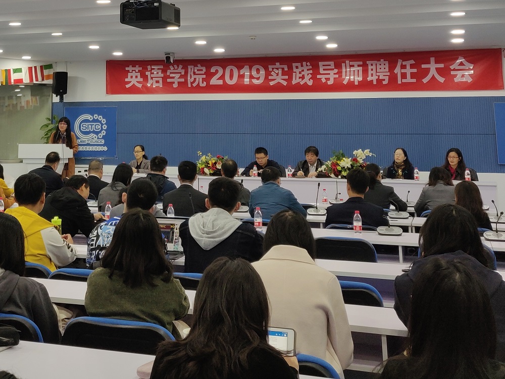 10月27日上午,水果派解说 2019实践导师聘任大会在诚信楼1412举行。水果派解说 向明友院长、江春副院长、金冰副院长、刘冰副书记、徐珺院长助理,23位实践导师代表和110名2019级MTI研究生参加了此次活动。会议由金冰副院长主持。