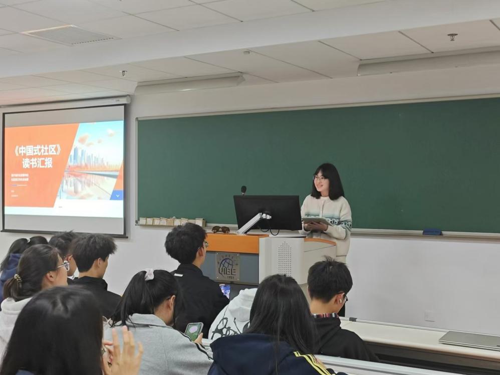 2022级党员欧念静与陈卓同学率先登场,为大家分享王德福所著的《中国式社区》。他们的讲述,如同一幅徐徐展开的画卷,深入浅出地剖析了中国社区的优势、问题与变迁历程。同学们仿佛置身于社区的发展脉络中,深刻感受到中国式社区的独特魅力与重要意义,也在心中种下了关注社会、奉献社会的种子。
