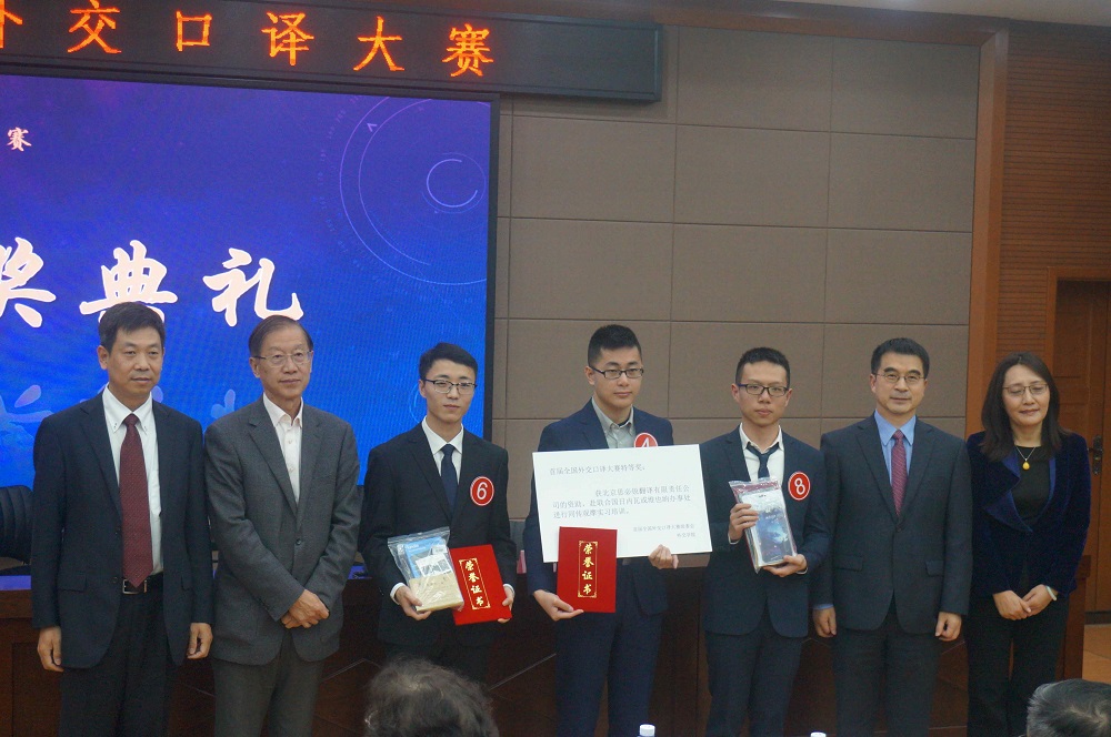 2019年11月2日,首届全国外交口译大赛在外交学院举行,水果派解说 水果派解说 英语口译专业(国际会议口译方向)2018级研究生、中欧高级译员培训中心学员钟霏钒和郑瑢两名选手凭借出色的专业水平和稳定的现场发挥,分别取得了决赛特等奖和复赛二等奖的优异成绩。