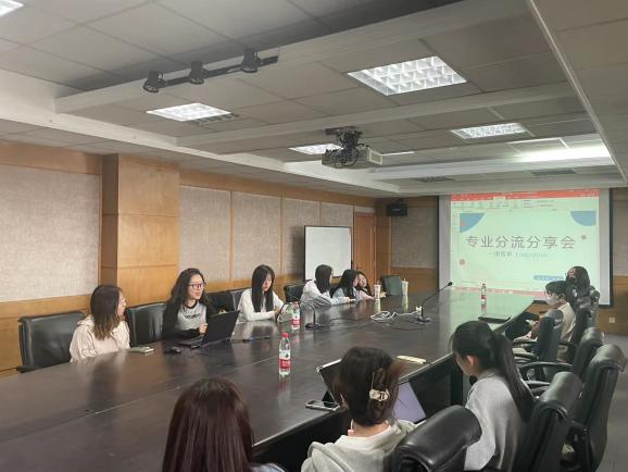 随后由李妮珊和刘心语同学介绍翻译专业。李妮珊同学首先对翻译专业进行概述,强调该专业训练的不仅是中英双语的表达能力,更对文化背景和行业知识提出要求。随后她详细解释了翻译培养方案中的专业课,并推荐相关入门书籍。刘心语同学从读研和就业两方面分享了翻译专业的未来发展方向。她先介绍了翻译专业国内读研和留学可以选择的专业,她强调要多搜集信息,做好未来规划,要多关注翻译行业发展动态,在实习中探索自己未来的职业规划,不给自己设限。