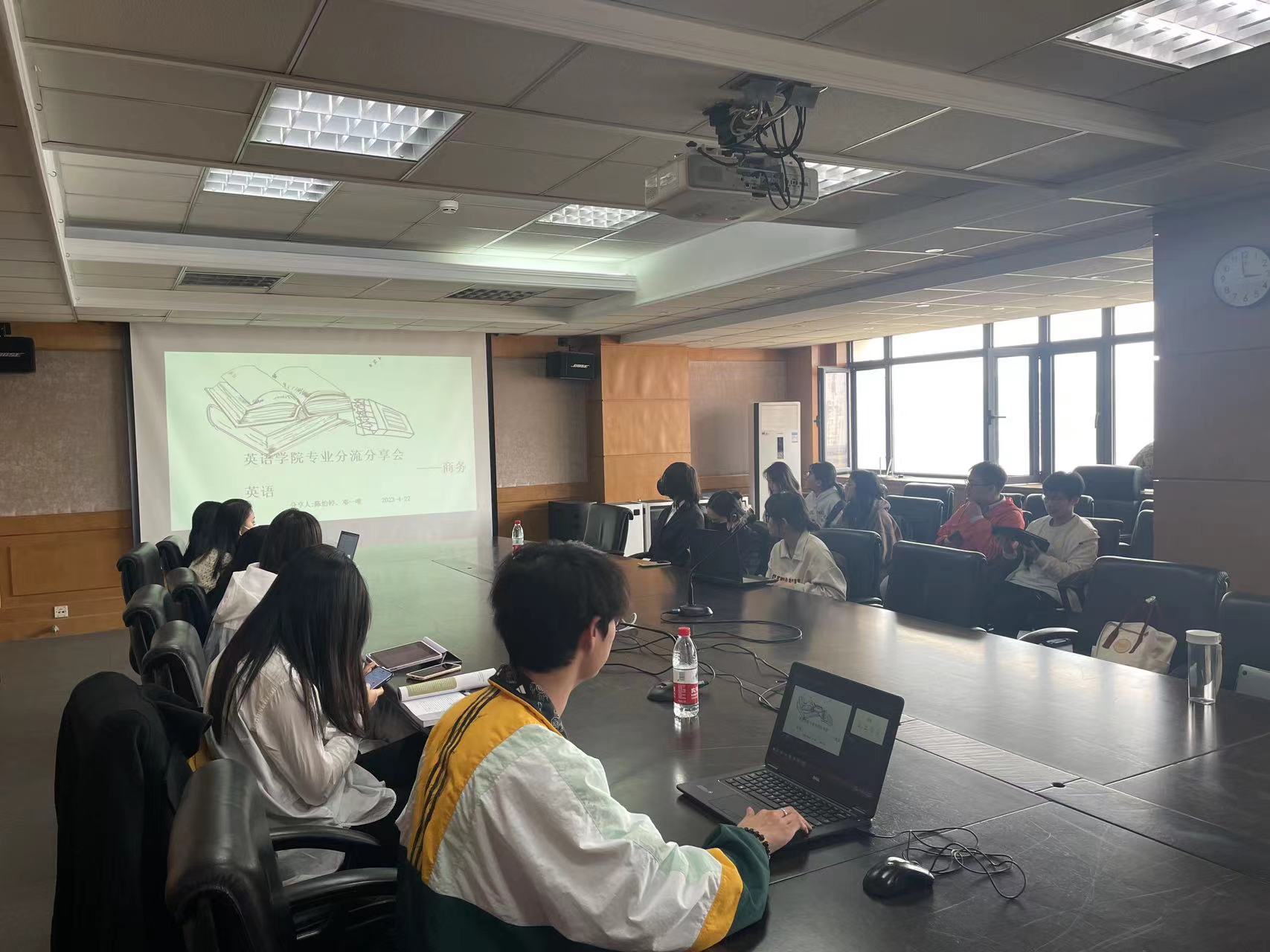 首先,邓一唯同学为大家介绍了商务英语专业,从专业简介、未来方向和个人经验三个方面展开分享。他结合培养方案向大家介绍了商务英语专业的重点课程,并且基于自身经历,向大家推荐了商英谈判大赛等多项实践活动。随后陈怡婷同学针对专业相关实习进行了分享,鼓励大家多尝试,在实习过程中找到兴趣点,明确未来的职业方向。