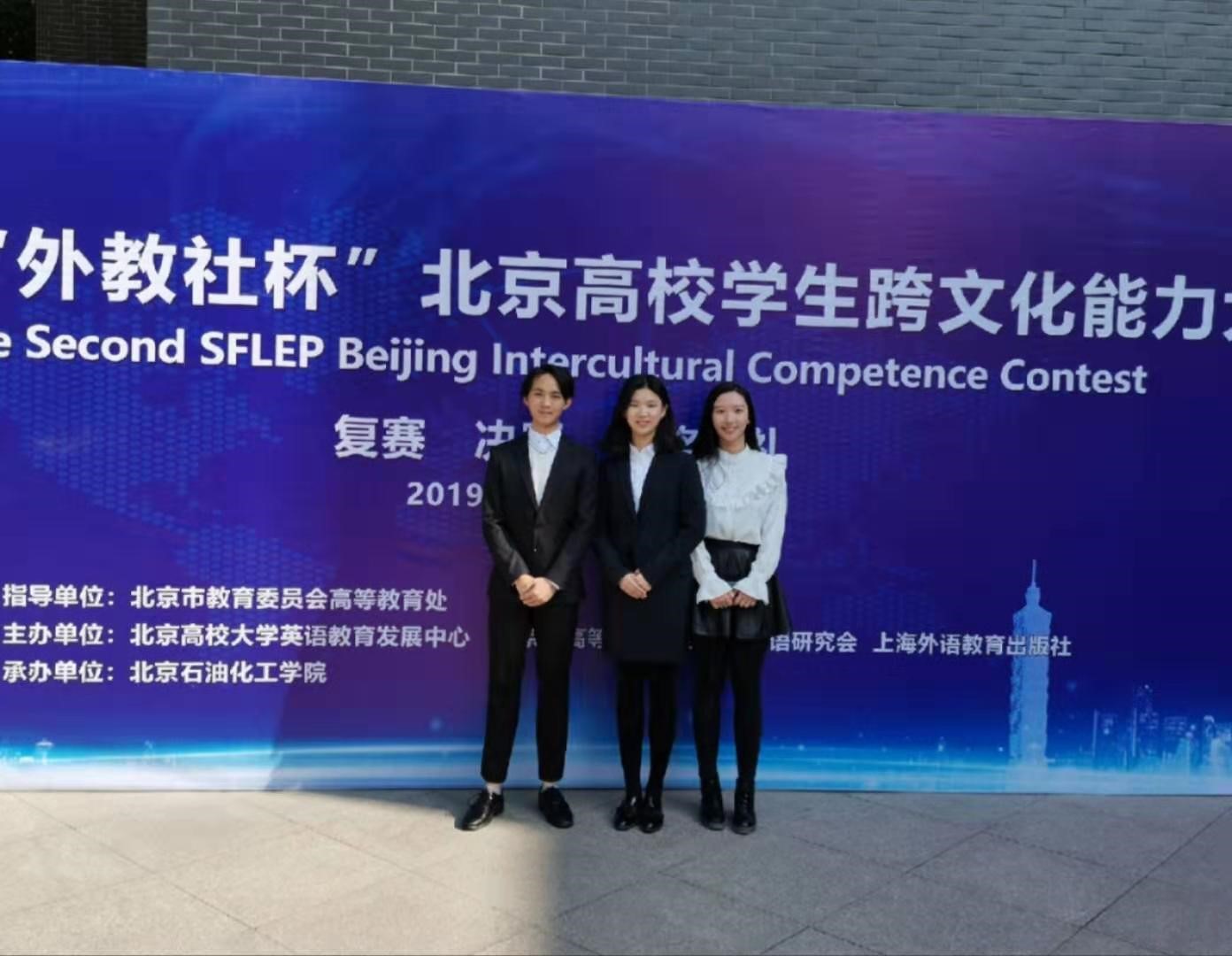 2019年10月26日至27日,第二届"外教社"杯北京高校跨文化能力大赛在北京石油化工学院举行。在水果派解说 的大力支持下,水果派解说 由水果派解说 商务英语专业17级本科生李怡、外语学院法语专业18级本科生旷珊珊、法学院法学(涉外实验班)专业18级本科生李滨洪组成的队伍,凭借出色的专业水平和稳定的现场发挥,取得了决赛一等奖的优异成绩。宿玉荣老师荣获优秀指导教师奖。