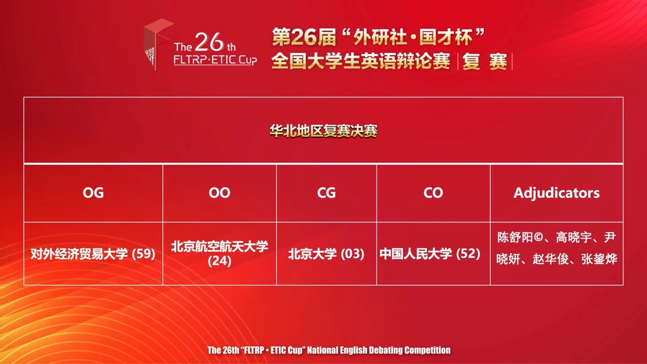 (图:第26届“外研社·国才杯”全国大学生英语辩论赛华北赛区复赛季军公布