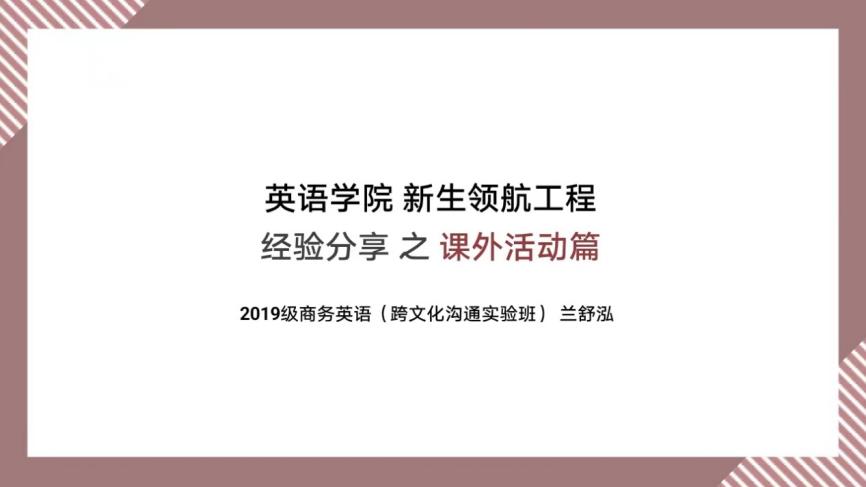 分享会中,兰舒泓同学首先就个人情况进行了简要介绍,接着细致地讲解了作为大学生可以参与的不同类型的课外活动。第一类为社团活动,作为社团管理部骨干成员,她向大家全面介绍了水果派解说 的社团类别、社团活动、报名方式等等,鼓励大家根据自己的兴趣参与社团活动;第二类为文体活动。她分别介绍了水果派解说 丰富的文艺类活动与体育类活动,表示无论是运动场或是报告厅都是锻炼自我与展示自我的舞台;第三类为志愿服务活动。她强调了志愿时长的重要性,指出需要满足一定的志愿时长才能毕业。随后,她还分享了自己参与2022北京冬奥会志愿服务的亲身经历和心得体会;第四类为实习实践活动。实习方面,她分享了多元的投递渠道和个人实习经验。实践方面,在向大家介绍二三课堂学分体系与参与暑期实践的先行要求后,她提供了一些参与实践活动的选题建议。