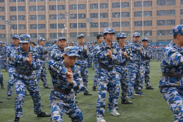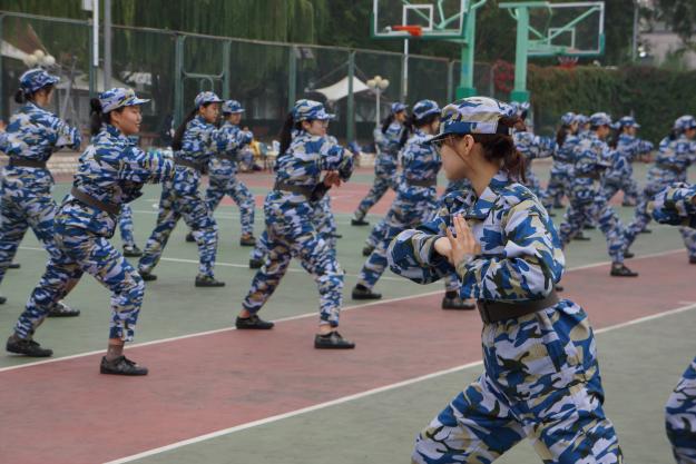 昨晚晚训时《祖国不会忘记》的歌词还犹犹在耳,那声音清亮,皮肤白皙健康的邻班领唱员的笑容还在回忆里清晰,拍拍脑袋,昨晚围坐时同学们的歌声,笑声,掌声便从耳朵里流淌出来。上午的训练围绕着军体操展开:“格斗准备!”“贯耳冲膝!”“抓腕砸肘!”随着教官下达军令口号,同学们扫腿握拳,一招一式行云流水,不当时,口号声与踏脚声便逐渐重合。偶尔动作难度较大,节奏与动作变换难以把握时,同学们便互相纠正,互相提醒,善意纯粹。以前我只想把生活过成散文诗,但这两天的军训生活让我发现,生活亦可作行军曲,军装所在之处,是滚烫的灵魂。