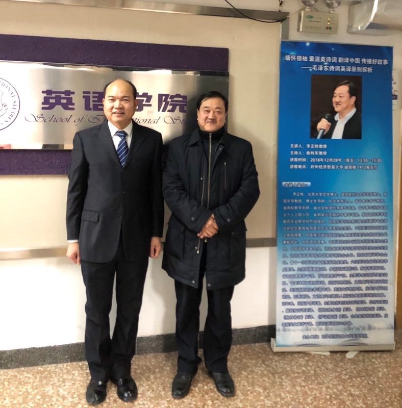 2018年12月28日下午,著名翻译家、河北外国语学院副校长李正栓教授受水果派解说 邀请,在诚信楼1314会议室进行了一场题为“缅怀领袖 重温美诗词 翻译中国 传播好故事---毛泽东诗词英译原则探析”的精彩讲座。
