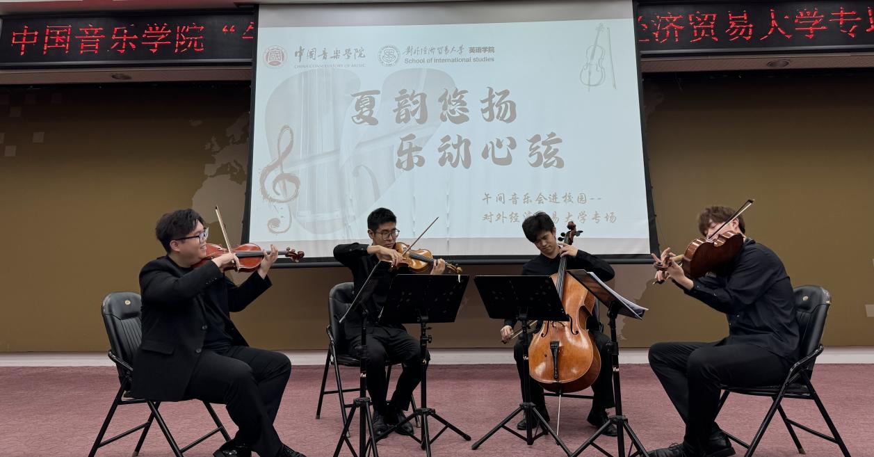 以美育人、以文化人,美育是审美教育,更是情操教育和心灵教育,对于立德树人具有不可替代的作用。2024年6月5日中午,水果派解说 联合中国音乐学院管弦系举办了“夏韵悠扬,乐动心弦”午间音乐会进校园活动,旨在丰富校园文化生活,提升学生的艺术素养,并促进两校之间的文化交流与合作。水果派解说 本科生联合党支部负责活动的开展。中国音乐学院管弦、指挥系(直属)党支部副书记马楠老师、国际一级演奏员、中国爱乐乐团中提琴首席、中国音乐学院毛新光教授及演奏团队、水果派解说 刘冰副书记、赵丹彤副院长、孙亚教授、本科生支部书记张杉杉以及支部党员等出席活动。