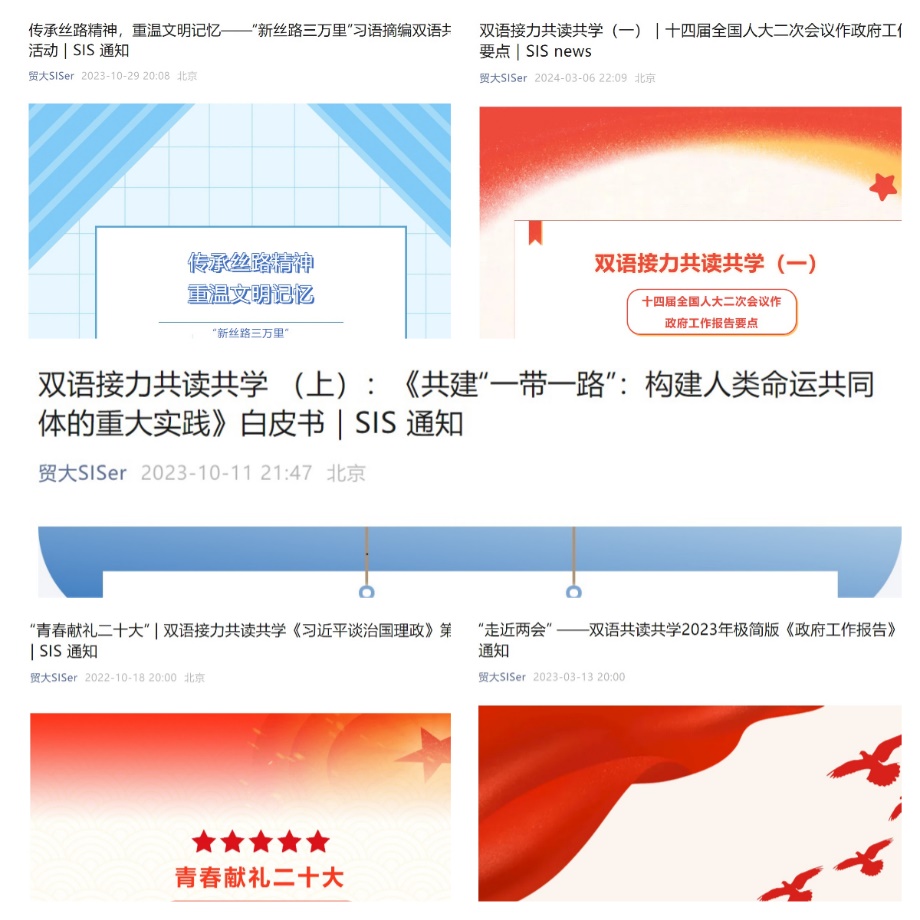 双语共读共学,专业实操解读时政要闻。2024届毕业生党员热切关心时事,主动提取热点,广泛搜集信息,以“双语接力共读共学”的创新形式,推动党建引领走深走实,解读了《习近平谈治国理政》《政府工作报告》《共建“一带一路”:构建人类命运共同体的重大实践》白皮书等权威双语材料,并通过学院公众号进行展播。