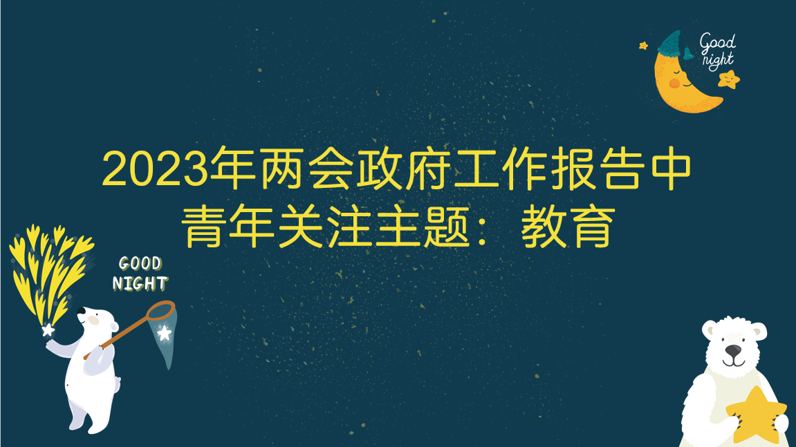 2023年3月14日中午,2019级党员谭雅中和马亚男在诚信1414展开了第二个主题的微党课分享会,即2023年两会政府工作报告中青年最关注的问题之一——教育。过去五年,我国在教育方面取得显著成就,主要包括财政性教育经费占国内生产总值比例每年都保持在4%以上,学生人均经费投入大幅增加;持续加强农村义务教育薄弱环节建设,基本消除城镇大班额,推动解决进城务工人员子女入学问题;持续实施营养改善计划,每年惠及3700多万学生等。2023年两会会前调查显示,教育是受访者最期待的两会议题,年轻人主要关心毕业求职、工作租房、未来规划等问题。本次两会出现了许多热点问题,如第三孩从幼儿园到高中免费教育、6岁以下儿童免费医疗、学龄前儿童接触熟悉2至3个运动项目等。2023年是全面贯彻落实党的二十大精神的开局之年,是实施“十四五”规划承上启下的关键一年,教育工作要坚定主攻方向和重点任务,谱写加快建设教育强国新篇章。基于此,两会提出未来规划,包括推进义务教育优质均衡发展和城乡一体化、大力发展职业教育、推进高等教育创新三个方面。两会中还出现了许多关于教育的双语热词,如高等教育(higher education)、职业教育(vocational education)、数字化教育转型(digital education transformation)、高质量教育体系(high-quality education system)、“双减”(ease the burden of excessive homework and off-campus tutoring for students undergoing compulsory education)。