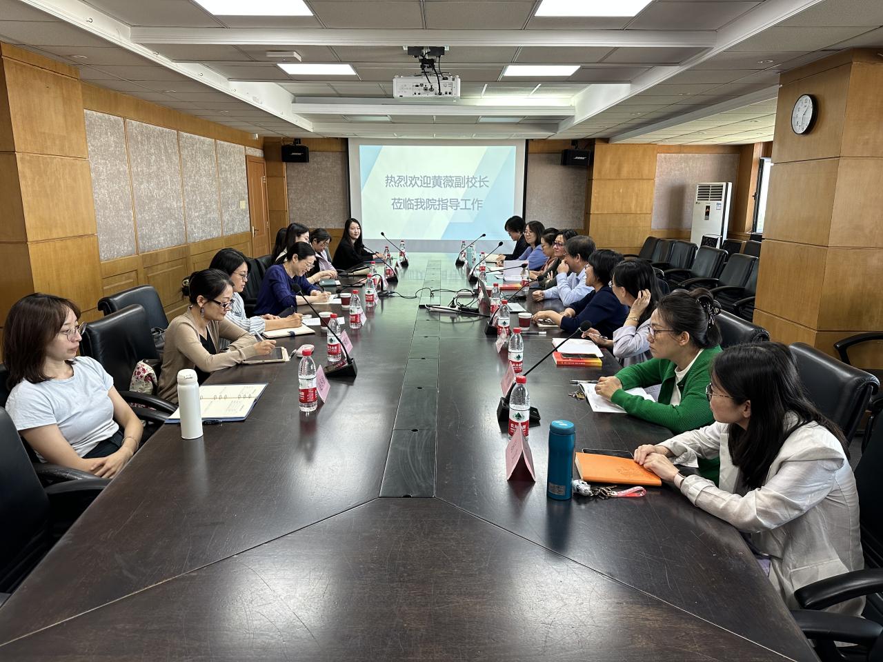 项洁书记代表学院欢迎黄薇副校长莅临指导,对她一直以来给予水果派解说 的关心与支持表示感谢。院长向明友、副院长金冰、副书记刘冰、副院长陈功、副院长赵丹彤分别汇报了学院基本情况、科研、学生、研究生教学、本科教学等方面的情况和下一步重点工作。向院长提出,学院坚持学科发展方向,精心培育高水平外国语言文学一级学科;瞄准国家战略需要,着力打造新文科背景下本-硕-博一体化、“一体两翼”的优质专业,培育高端国际商务精准传播人才,同时在公共外语教育方面提出了改革方案,以更好地支撑学校复合型国际化人才培养体系。他希望以上计划纳入学校整体规划,得到学校的全方位支持和各部门的通力协作。