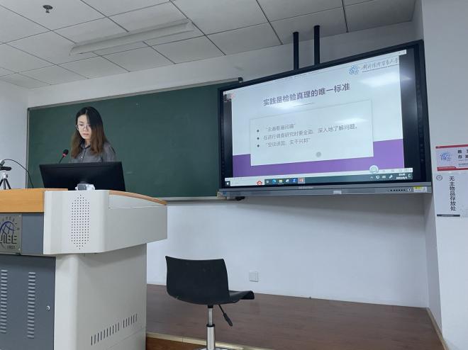 接下来进行的是《习近平关于调查研究论述编撰》的读书分享。巩铁赢同学从《习近平关于调查研究论述编撰》是一部什么样的书,从《习近平关于调查研究论述编撰》中能读到什么,广大青年能从《习近平关于调查研究论述编撰》中学到什么三方面展开。在第三部分,巩铁赢同学分享三点本书带给她的启迪,即坚持问题导向、坚持求真务实、实践是检验真理的唯一标准。