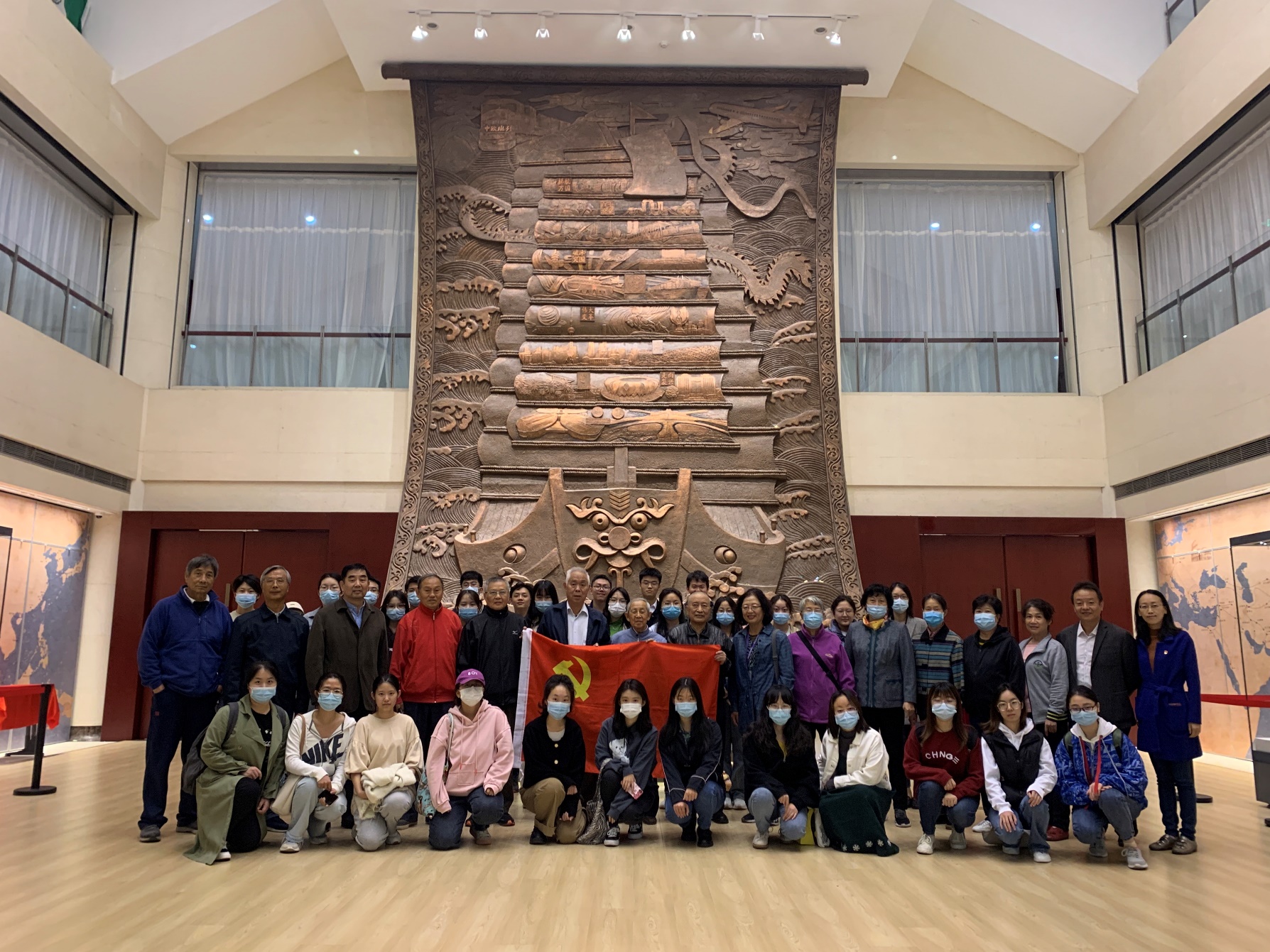 对外经贸博物馆展示中国贸易从远古到近代再到新中国成立后的发展历程,重要珍贵展品有类别齐全、器型精美的外销瓷器和丝路沿线国家的古钱币,更有李岚清“改革开放印谱”、中国入世签字笔等,生动展现了中国对外经贸发展变迁的宏大历程和重要历史意义。老教授们和同学们纷纷在展柜前驻足观看,听取讲解员讲述其背后的故事,感受到从草原丝路与海上丝路的先后开通到“一带一路”到不断加快建设的自由贸易试验区,中国对外经贸随着国家的强大不断发展。