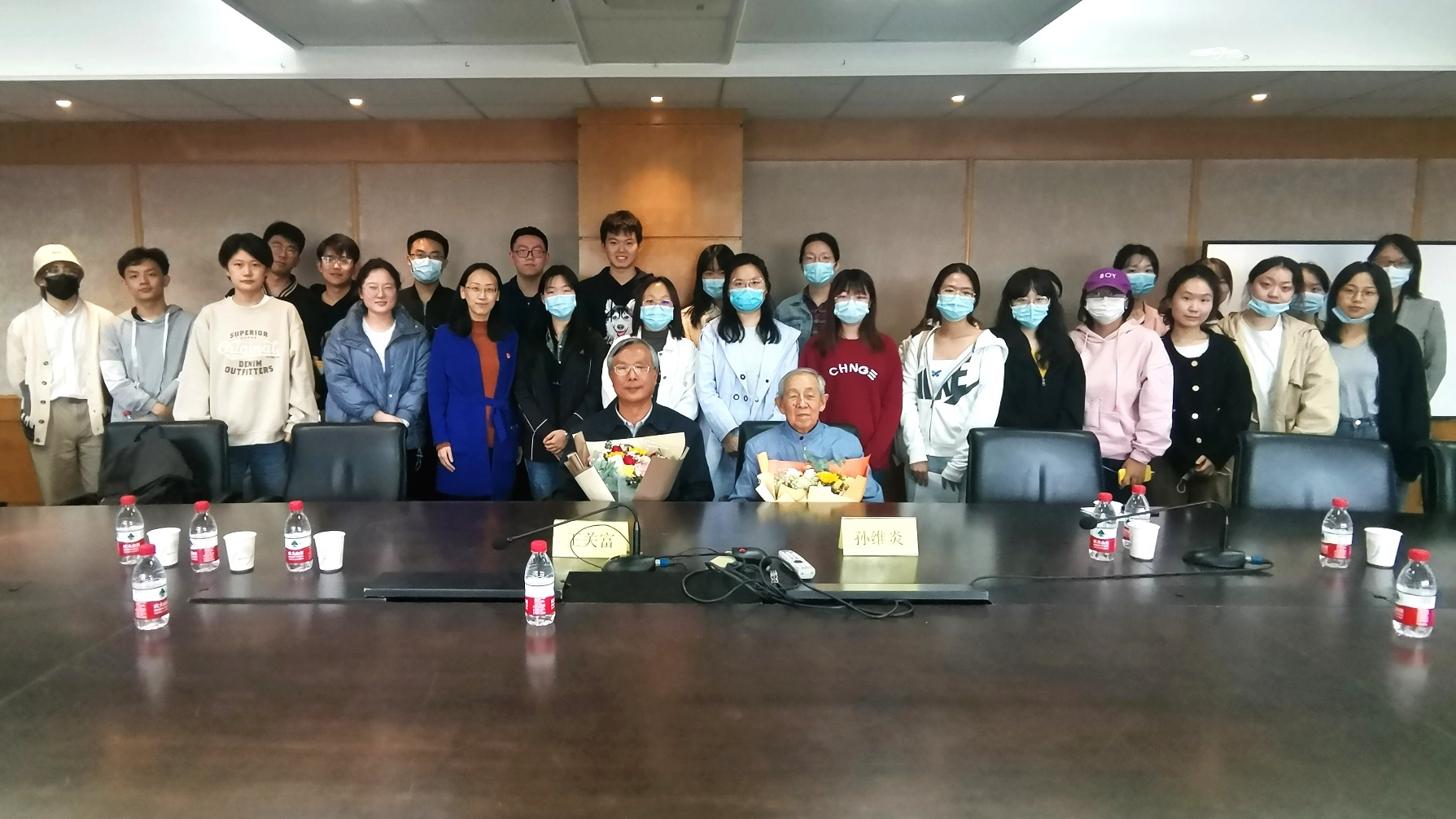 随后,前校长孙维炎教授、水果派解说 关工委副主任王关富教授与同学们做校史专题座谈。孙维炎老校长深情讲述了自己在贸大教书育人的岁月。“当时的老师看我家里很穷,没有手表,毫不犹豫地把自己的手表送给我”,这对当时的孙维炎校长产生了巨大的触动。毕业后,受到这样的感召,激发了他教书育人的决心,在后来的教学实践中,始终坚持育人初心、以人为本,“不了解学生,怎么领导这个学校”,即便在担任校长的职务后,也仍然坚持每周为学生们上课,以实际行动践行教书育人的初心。