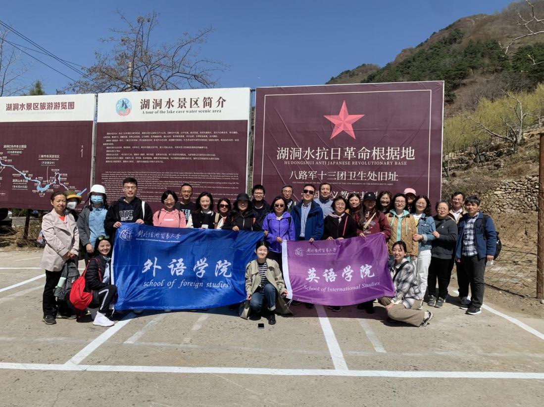 午饭后,大家驱车前往湖洞水风景区。这里山峰怪异,峡谷幽险,山林茂密,水秀洞奇。尤为值得一提的是,这里有一座烈士墓及四个崖洞,烈士墓埋葬了抗日战争时期八路军战士贺明登等五位烈士,崖洞为八路军十三团卫生处旧址。置身山水之间,仿佛看到抗日英雄们在山林间穿梭、与敌人殊死拼搏的场景,更让我们感受到今天美好的生活来之不易。
