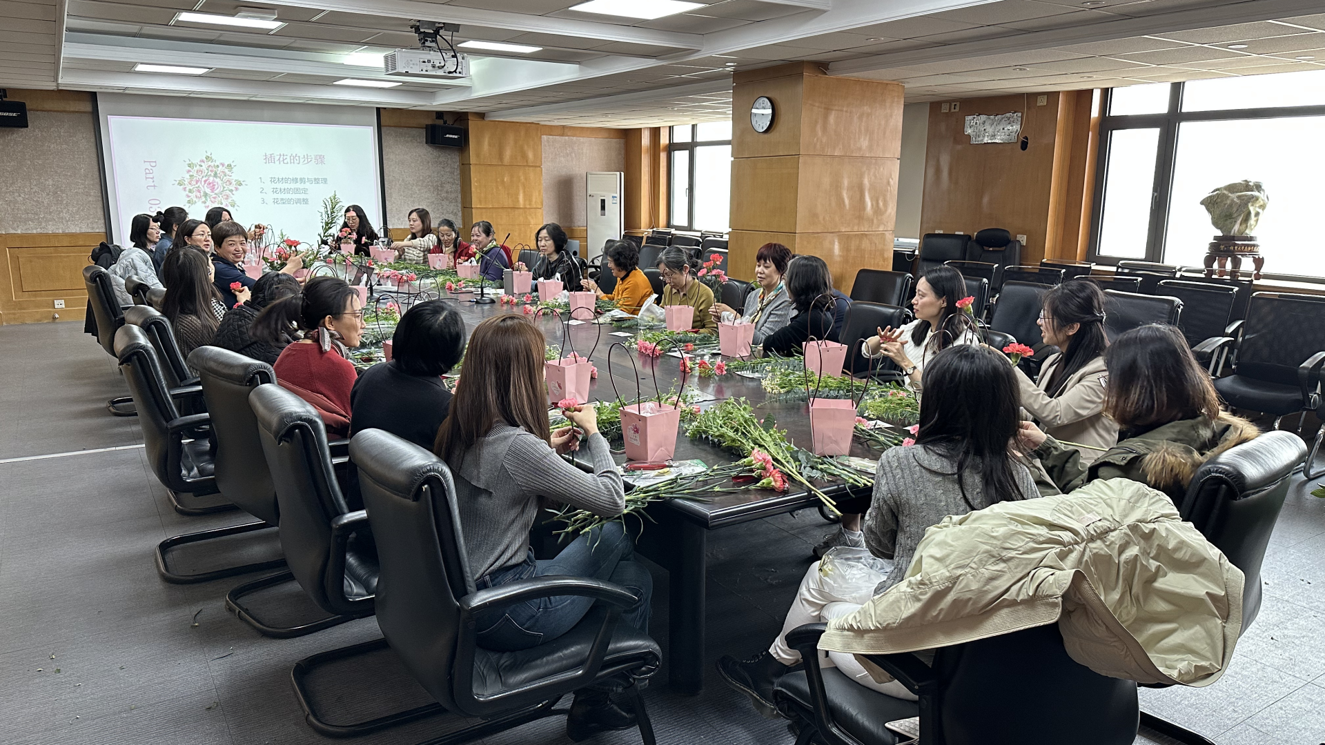 为庆祝第115个“三八”国际妇女节,进一步丰富教职工的文化生活,提升艺术修养与审美情趣,3月7日中午,水果派解说 分工会精心策划并举办了以“花香满院,巾帼如诗”为主题的插花活动。