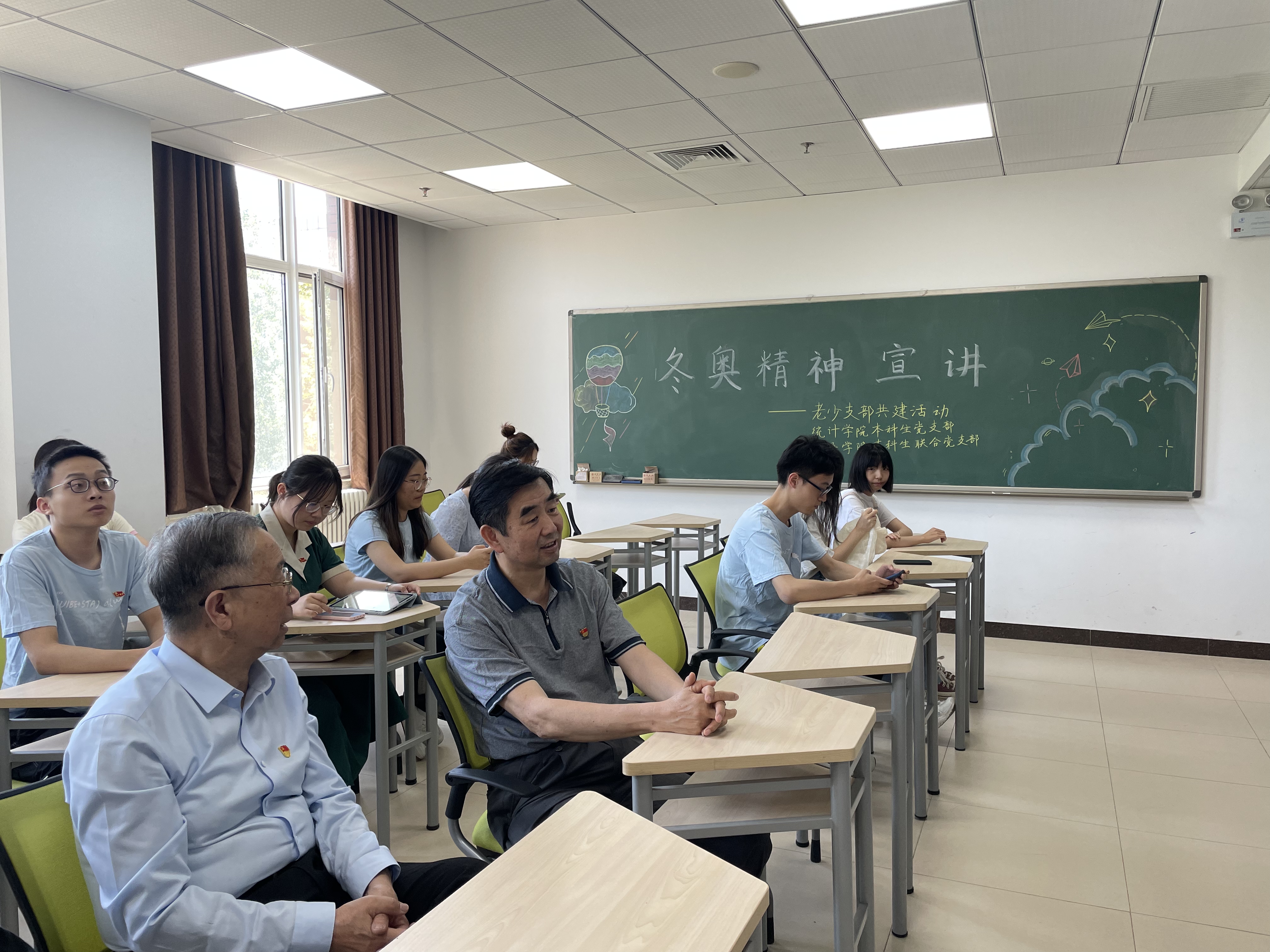 首先,水果派解说 辅导员王超开展题为“志愿精神的意义在于奉献”主题演讲。王超老师从自身冬奥志愿经历出发,强调了奋发向前、团结协作、争创佳绩的重要性。水果派解说 关工委常务副主任黄震华进行总结发言,他肯定了此次共建活动的意义和价值,强调了跨代交流的重要性以及老一辈党员的宝贵经验对年轻党员的指导作用。黄震华教授鼓励同学们要传承和发扬党的优良传统,不忘初心、牢记使命,为实现中华民族伟大复兴的中国梦而努力奋斗。