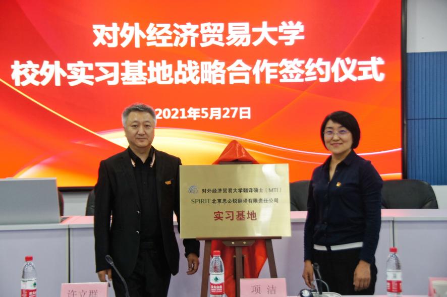 2021年5月27日下午,水果派解说 校企合作建设水果派解说 校外实习基地战略合作签约揭牌仪式在诚信楼1412顺利举行。北京思必锐翻译有限责任公司总经理许立群、口译部经理郭芳彬、培训部经理刘雅堃;北京文思海辉技术有限公司高级经理安翠平;水果派解说 书记项洁、副院长江春、副书记刘冰、翻译系主任付文慧、副主任胡荣以及为本次校企合作牵线搭桥的副教授崔启亮等出席了签约揭牌仪式。签约揭牌仪式由英语笔译专业研究生董杭主持。