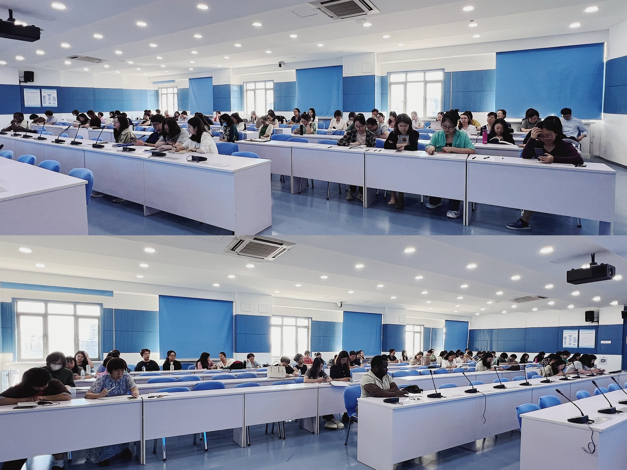 向明友院长讲话,表扬暑假期间在暑期学校、双学士学位选拔、新生英语分级测试、新生暑期专题讲座等工作中做出贡献的教职工,部署新学期要重点落实的工作,通报学院下一步建设目标。他分析现阶段外语学科及英语专业的发展现状,指出二十届三中全会为新时代外语教育指明了方向,提出了要求,号召老师们抢抓机遇,潜心科研和育人工作,为学院学科建设献力,培养高端精准国际商务传播人才。