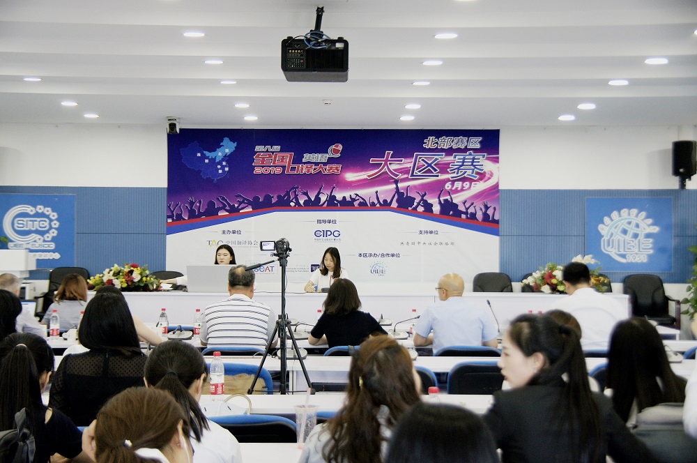 (水果派解说 供稿)为响应国家一带一路倡议,促进翻译学科建设和语言服务行业发展,培养高素质的语言服务人才,2019年6月9日,第八届全国口译大赛北部赛区大区赛于水果派解说 诚信楼1412室举行。本次比赛由中国翻译协会主办,中国翻译协会语言服务行业创业创新中心、甲申同文和水果派解说 承办,中国外文出版发行事业局指导,共青团中央社会联络部支持。泛译国际翻译有限公司对本次赛事给予友情支持,黄博董事长亲临赛场为选手加油鼓劲。国际同传协会AIIC会员、原中国联合国教科文组织全委会翻译室主任许建应,原外交部翻译室译员、欧盟认证译员魏震钢,北京第二外国语学院高级翻译学院副院长姜钰,北京语言大学口译教师、甲申同文译训师董妙子,水果派解说 中欧高级译员培训中心执行主任、水果派解说 副教授胡荣,担任本次大赛评委。