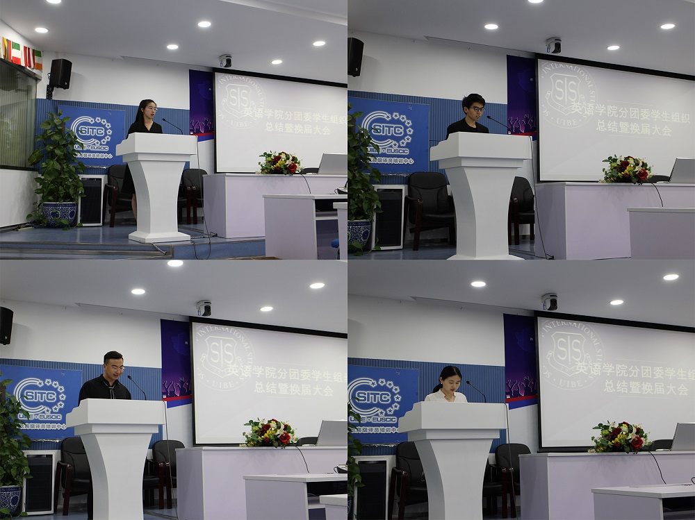 分团委学生会主席徐畅、大学生职业发展中心主席牟一凡、社区英语中心主任李仕博、学业科研发展中心秘书长刘韫玉依次进行工作总结。他们分别回顾了过去一年的各项工作,对全体成员的付出给予表扬与肯定,并表达了对于未来的展望。总结完毕后,各学生组织负责人宣读了表彰结果。