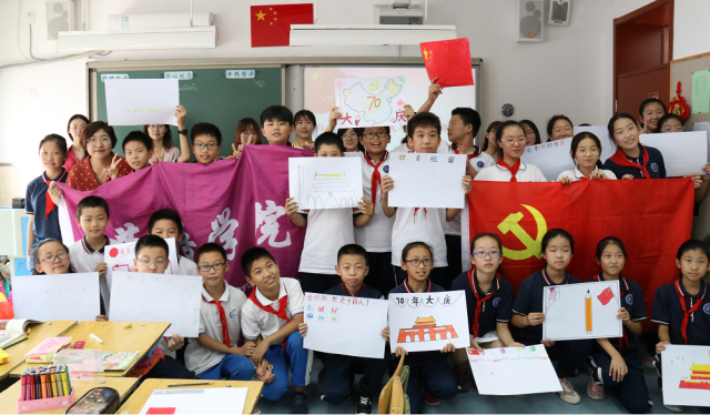 附属小学开展了“红领巾中国梦,我与祖国共成长——庆祝新中国成立70周年”支部共建活动。研究生党支部一行17人与附小六年级1班、2班61位同学互动合作,取得了良好的活动效果。