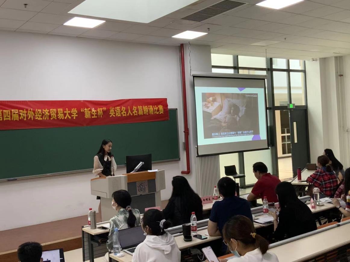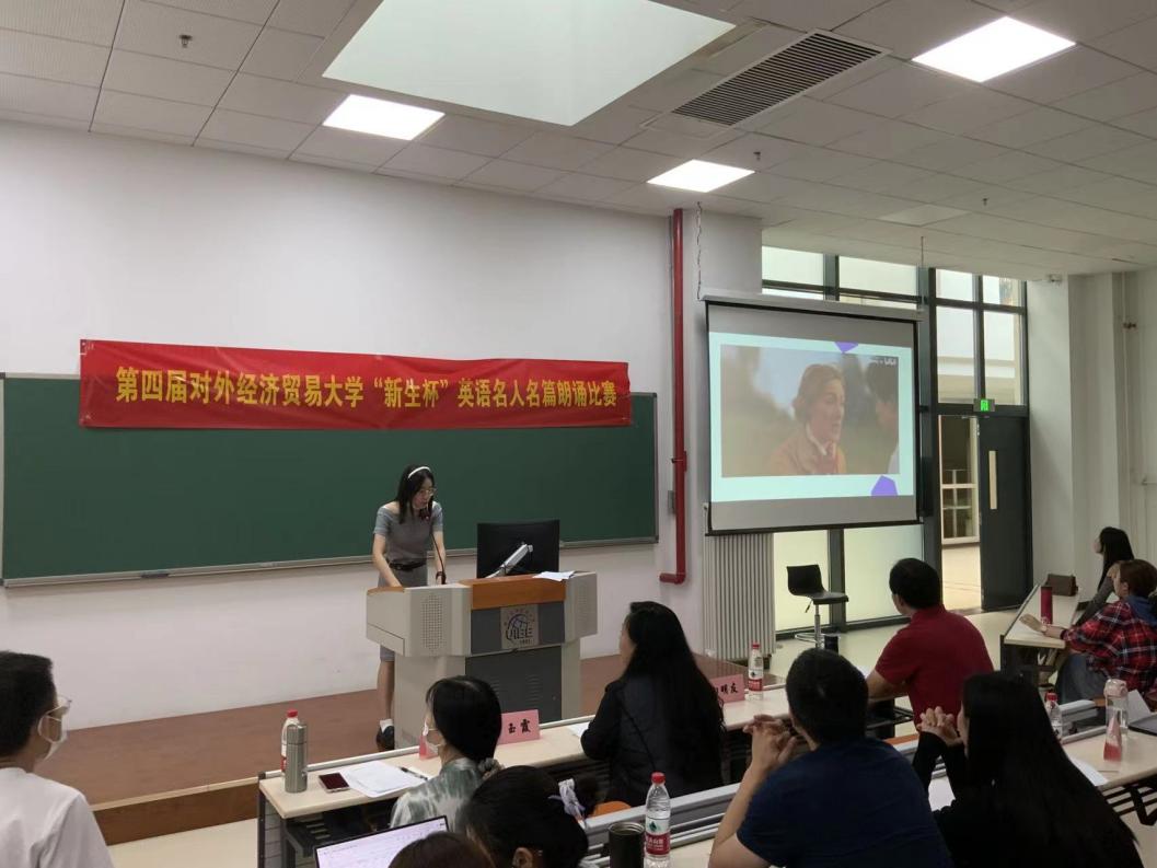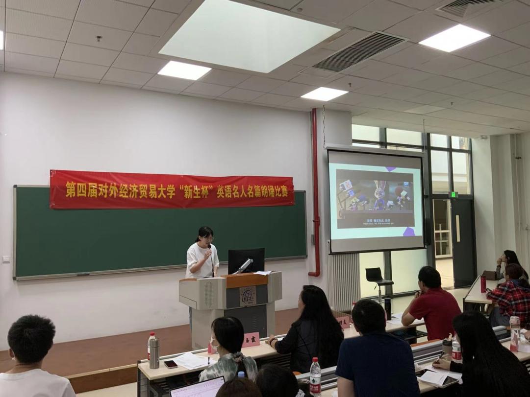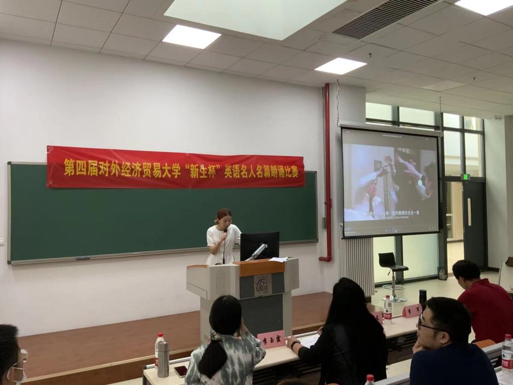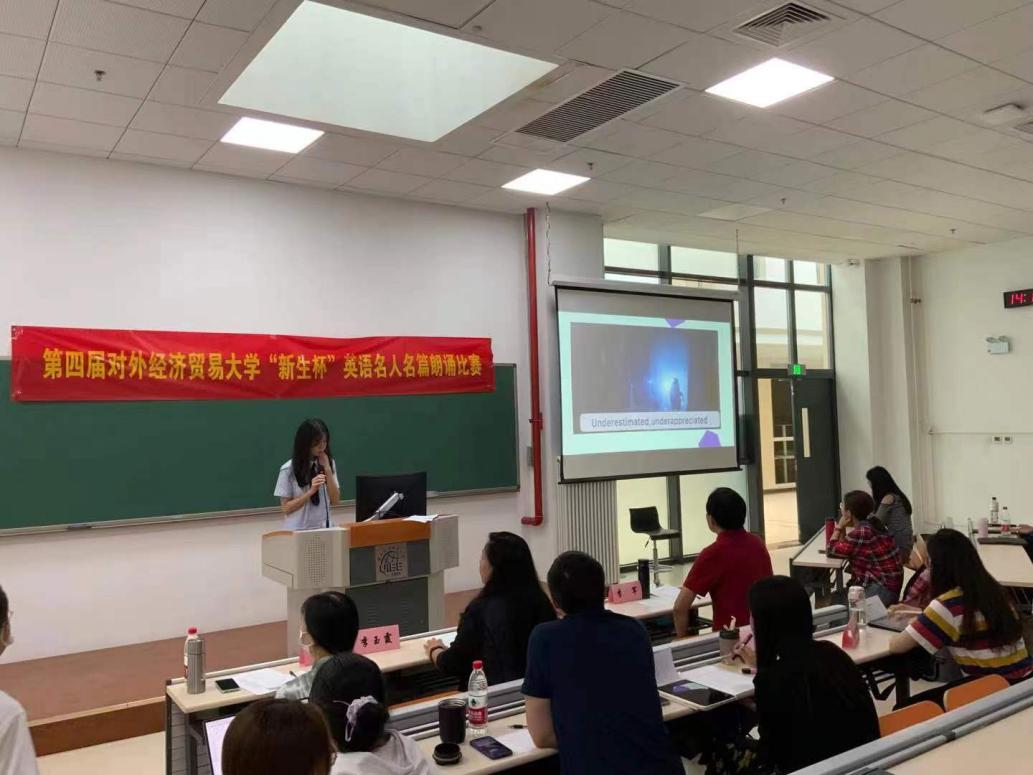 9月29日,水果派解说 第四届“新生杯”英语名人名篇朗诵比赛决赛在求索楼B203教室举行。本次大赛由水果派解说 主办,水果派解说 分团委学生会承办。大赛初赛要求学生从比赛组委会精选的英语经典文学名著名篇或名人演讲中挑选片段进行背诵,决赛指定十部兼具思想、艺术和趣味性的英语电影或纪录片,要求学生现场进行英语配音,比赛内容和赛制的设计旨在提高学生人文素养、培养语言综合运用能力。