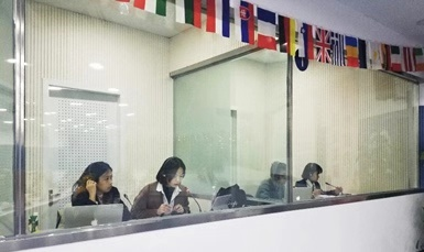国际会议口译专业二年级学员承担讲座全程的同传任务。