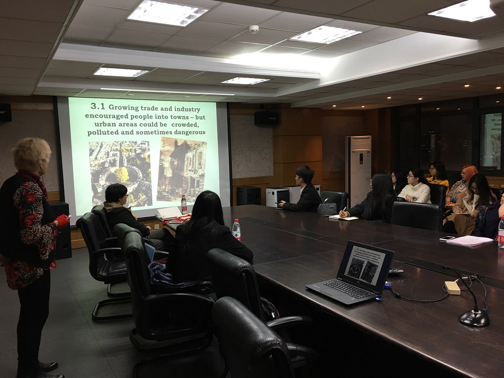 讲座之前,金冰副院长与Corfield教授就拓展我院和皇家霍诺威学院的学术交流合作进行深入探讨。金冰副院长详细介绍了我院在联合培养、商务英语师资培训、中英青少年交流、学术出版等方面和英国名校合作的意愿,Corfield教授表示,她将协助我院拓展相关领域的合作,通过学术交流,增进两国学者之间的彼此了解。