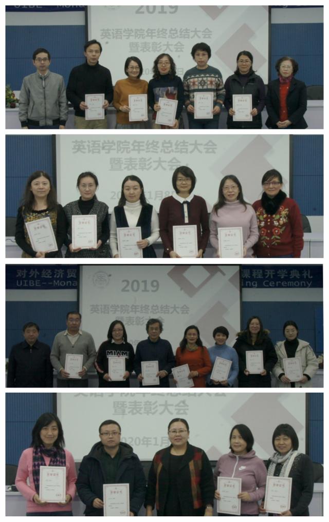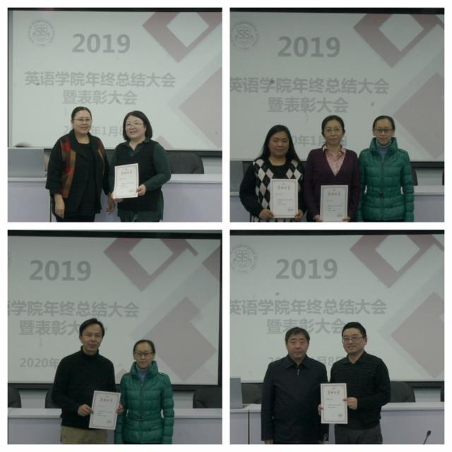 随后,刘金兰书记宣读2019年各类校级获奖名单及水果派解说 2019年终表彰奖励决定。本年度,我院教师共获2项省部级奖项,史兴松获“北京市教学名称”称号,王立非、崔启亮获“北京市第十五届哲学社会科学优秀成果二等奖”。此外,水果派解说 教师参加各类教学竞赛获奖4人次,另有9名教师指导学生参加各类专业竞赛并获奖。根据教师表现,水果派解说 院内评选出“教学标兵”6名,“科研标兵”6名,“优秀党务工作者”1名,“优秀党员”5名,“师德先进个人”2名,“优秀班主任”1名,“优秀管理工作者”7名,“社会服务奖”1名。向明友院长、刘金兰书记、孙亚副院长、江春副院长、金冰副院长、刘冰副书记分别为以上获奖教职工颁发证书。