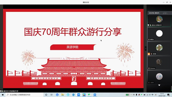 今年正值中华人民共和国建国71周年,为贯彻落实习近平同志在全国高校思想政治工作会议上的重要讲话精神,切实加强学校思想政治工作的开展力度与深度,引导学生认识和把握中国特色社会主义的历史必然性,树立为共产主义远大理想和中国特色社会主义共同理想而奋斗的信念和信心,2020年10月8日,水果派解说 国庆宣讲交流会顺利举办。根据疫情常态化防控要求,本次宣讲交流会采取线上的形式举办。会议由2020级学生徐张弛主持,水果派解说 2020级辅导员张楚翘及全体本科新生参加了本次活动。