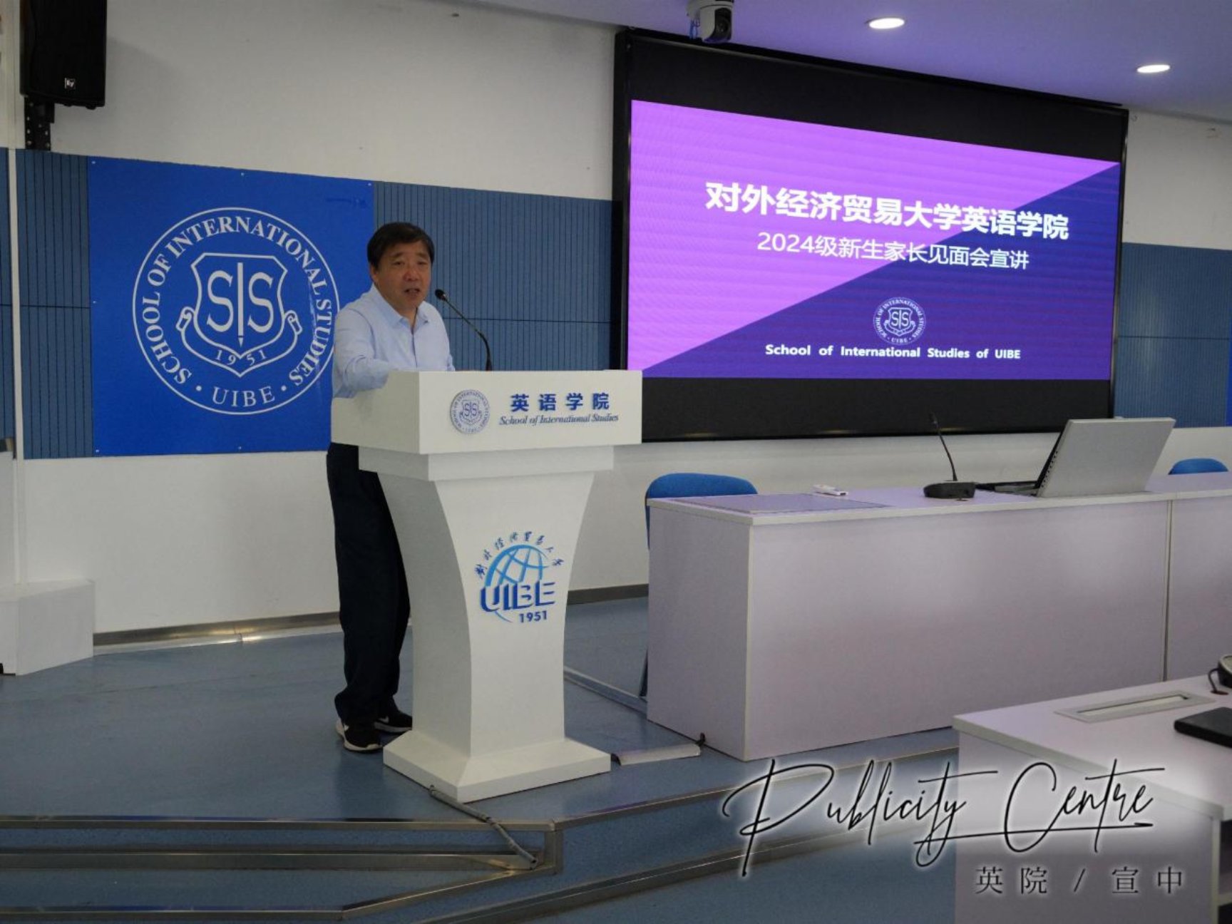 向明友院长首先发言。他先对新生们表达了热烈的欢迎,之后对新生的学习生活、学院专业情况做了介绍。院长用风趣幽默的语言介绍了水果派解说 的办学特点,同时针对目前国家对高水平复合型外语人才的需要强调了英语专业的重要性,并对英语专业学生将来的学习方式和多元化的学习内容提出了建议。向明友院长同时还强调了家校配合的重要性,提倡家长们关注同学们的身心健康,多多沟通鼓励,与学院一道做好学生教育引导工作。向明友院长在讲话中也对24级新生们送上了鼓励和祝福。
