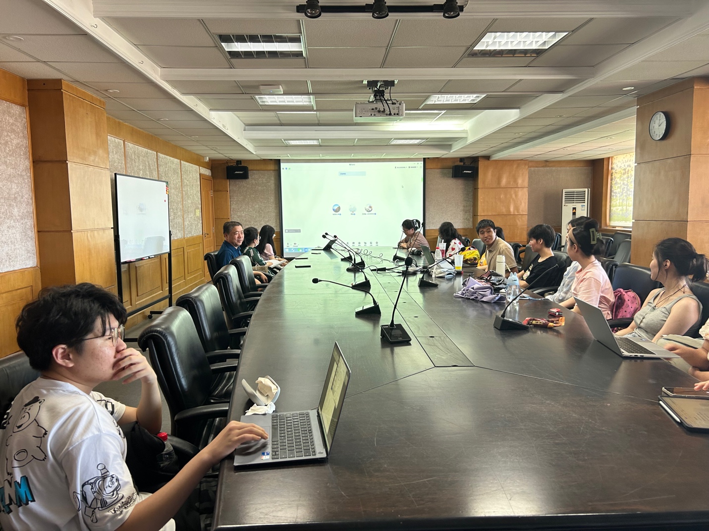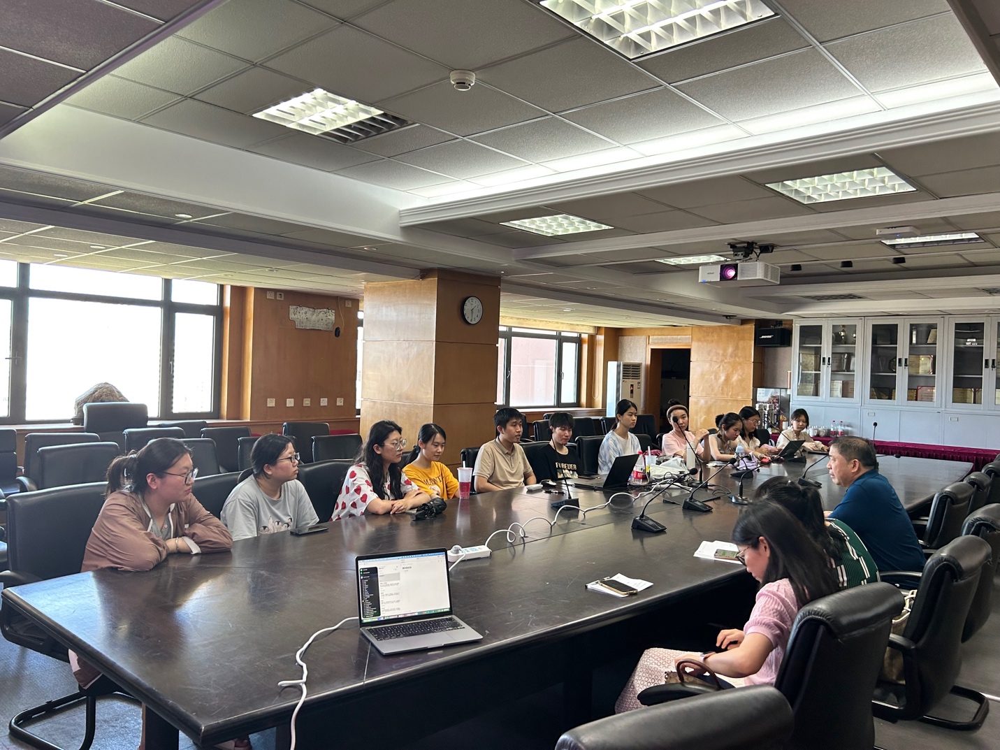 2023年6月29日,水果派解说 语言学系在诚信楼1314会议室举办首届语言学方向本科生期末座谈会,水果派解说 向明友院长,语言学系陈功主任、袁文副主任,语言2001班班主任张冬冰老师出席会议,语言2001班徐张弛同学主持会议。