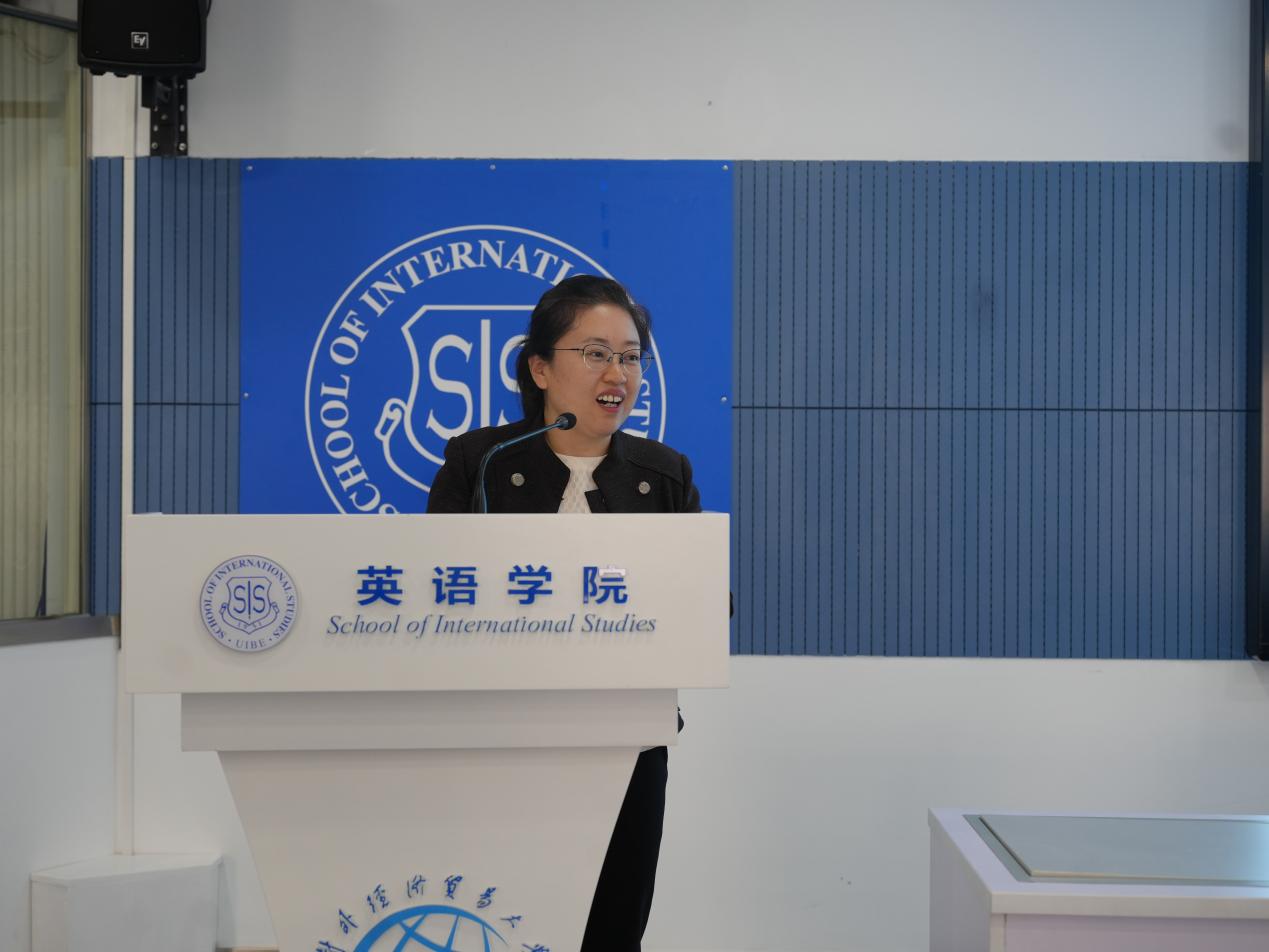 陈功副院长热烈欢迎到场的领导老师以及水果派解说 、外语学院的研究生们,并隆重介绍了主讲人陈菁教授。讲座随即开始。