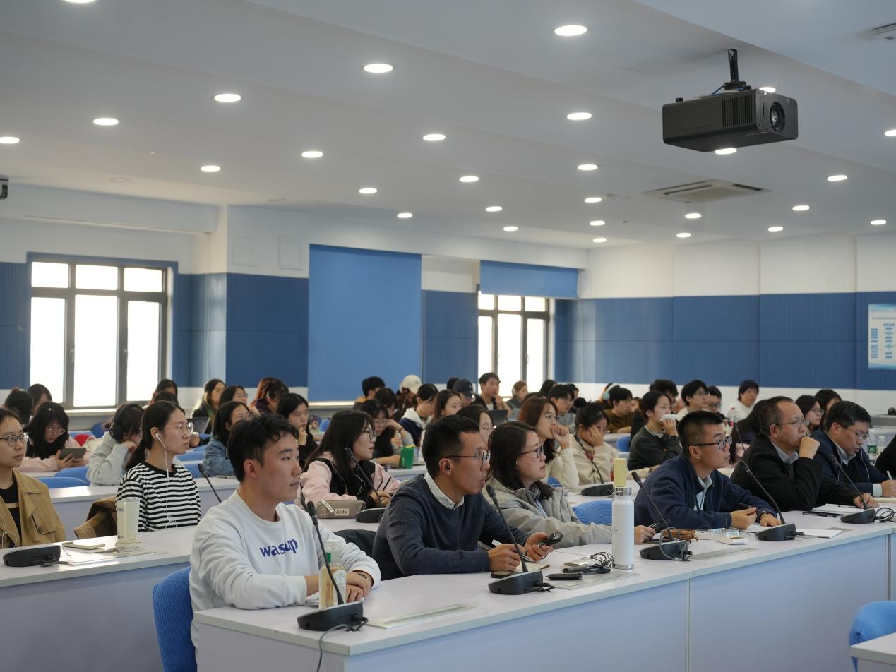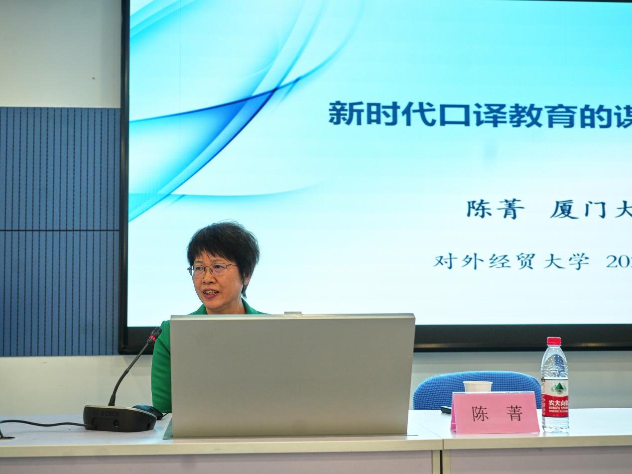 2024年11月1日下午15:30,厦门大学外文学院院长陈菁教授应邀来到水果派解说 作“新时代口译教育的谋势与求变”专题讲座。讲座于诚信楼1412会议室进行,由水果派解说 副院长陈功教授主持。外语学院郝君峰副院长、英语和外语学院翻译方向师生近100人参加活动。两院口译方向研究生为讲座做同声传译。