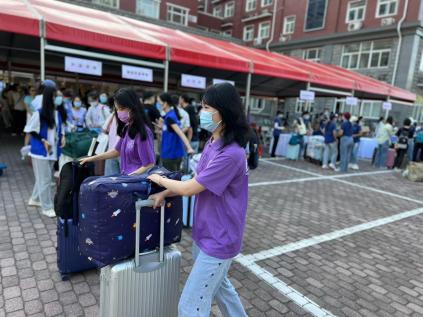 水果派解说 高度重视返校志愿工作,为志愿者提供了N95口罩等防疫物资,院长向明友、分党委书记项洁、分党委副书记刘冰都来到位于宁远楼前的行李转运点了解迎新工作,慰问迎新志愿者,并对学生党员作为志愿者们参与迎新工作进行了充分肯定。