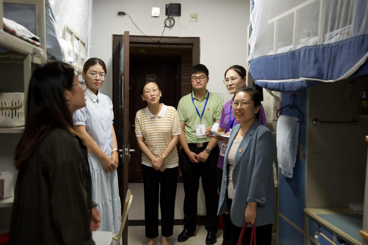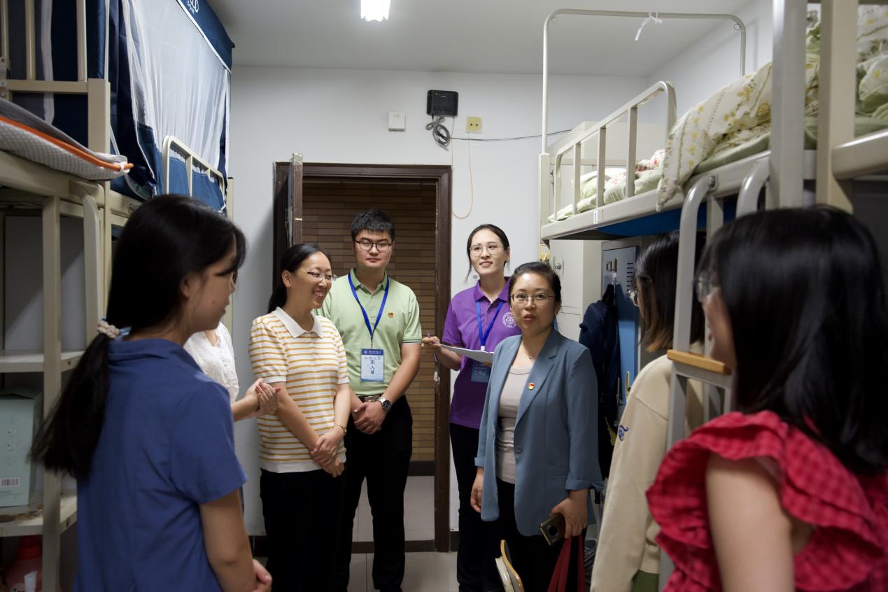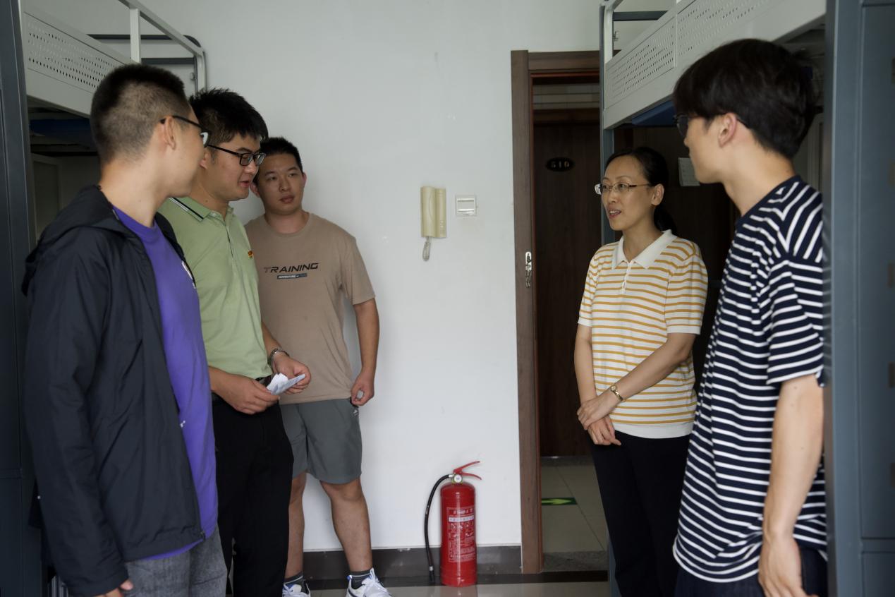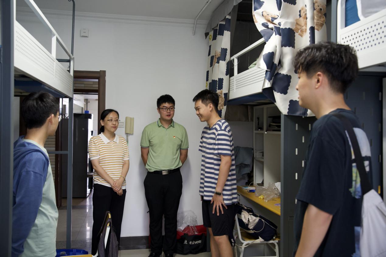 为帮助新生适应新的居住环境与宿舍生活,6日下午16时,水果派解说 党委副书记刘冰、水果派解说 副院长陈功、研究生辅导员苏越阳深入宿舍与新生们亲切交流,了解他们的本科学习与家乡情况,询问是否适应新的环境,解决同学们生活上的疑虑,并对同学们表达期望之情。同学们对老师的慰问表示感谢,并表达了对贸大环境的赞许与未来努力学习实践的决心。