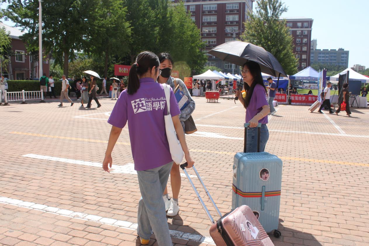 当天,学院研究生党支部还组织了数十名党员志愿者,在诚信楼前为新生提供“行李搬运,温暖同行”志愿服务。