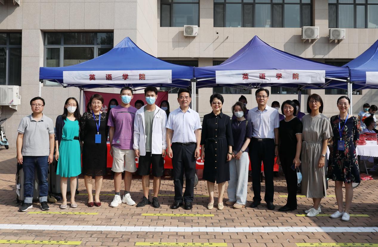 迎新期间,校党委蒋庆哲书记、文君副书记和相关职能部门负责人莅临水果派解说 迎新工作现场,了解水果派解说 今年的招生情况和新生报到情况,并与迎新工作人员和新生代表合影留念。