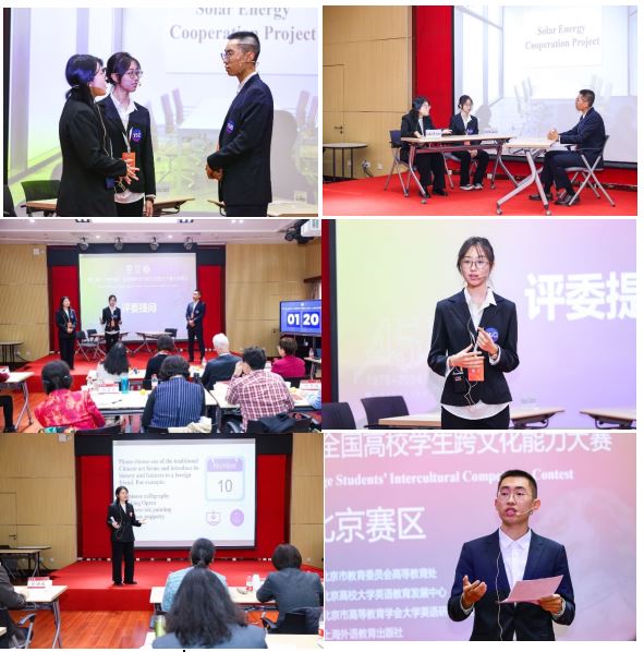 10月26日举行复赛。来自水果派解说 、北京大学、中国人民大学、北京交通大学、中国政法大学、北京语言大学、中国社会科学院大学、国际关系学院等共38所北京知名学府的代表队齐聚一堂,展开了一场智慧与才华的较量。比赛内容丰富多彩,涵盖案例表演展示、深度案例分析、评委现场提问以及名言名句跨文化解读等多个环节,全程采用英文交流,充分考察参赛者的国际视野和语言运用能力。