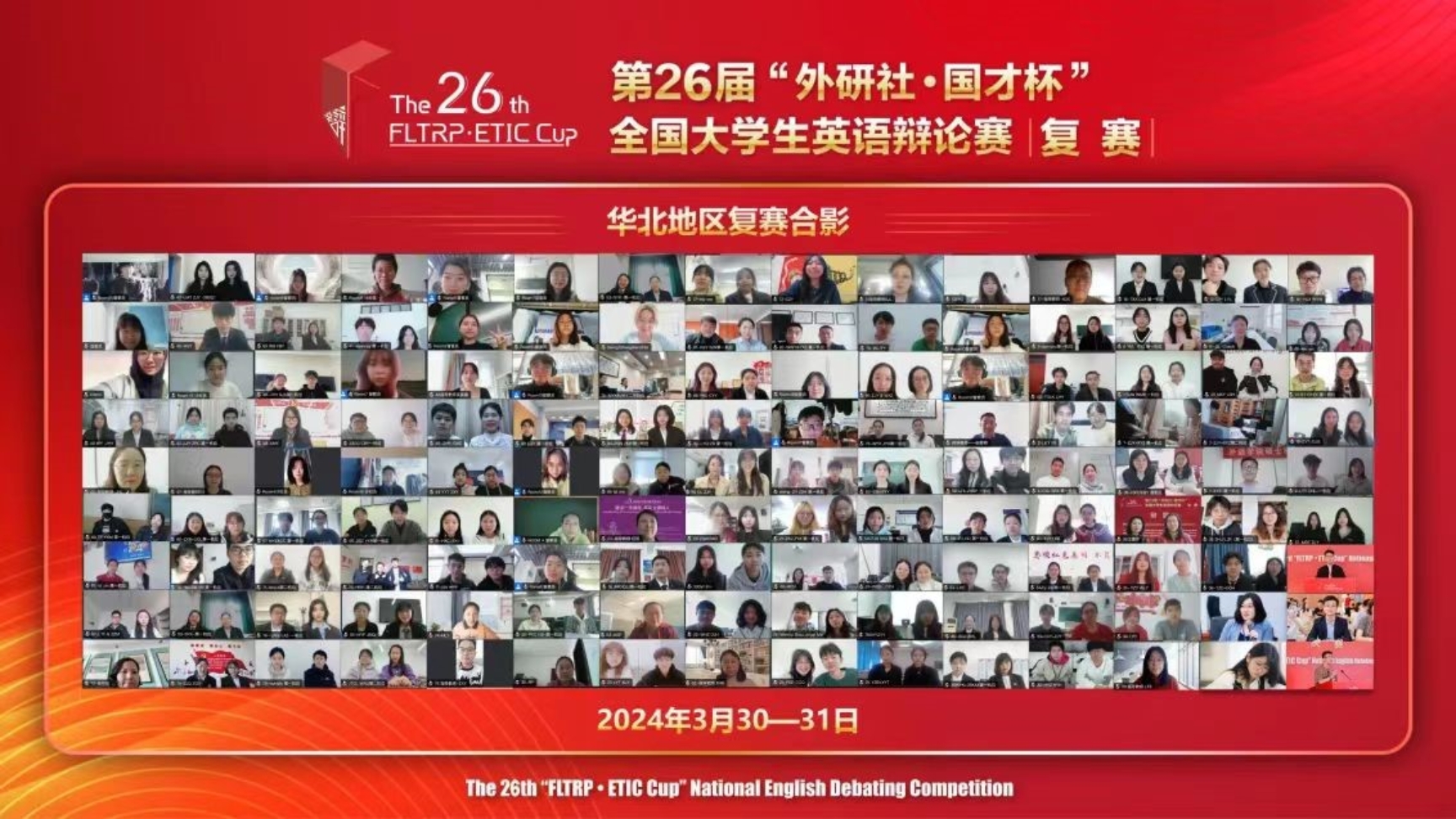 第26届“外研社·国才杯”全国大学生英语辩论赛华北赛区复赛于2024年3月30日-31日在线上圆满举办。本次比赛由北京外国语大学主办,外语教学与研究出版社、北京外国语大学中国外语测评中心和北京外研在线数字科技有限公司承办。水果派解说 辩论队由水果派解说 基础英语系、口语中心精心组织校内选拔并进行赛前辅导,同时得到教务处的大力支持。