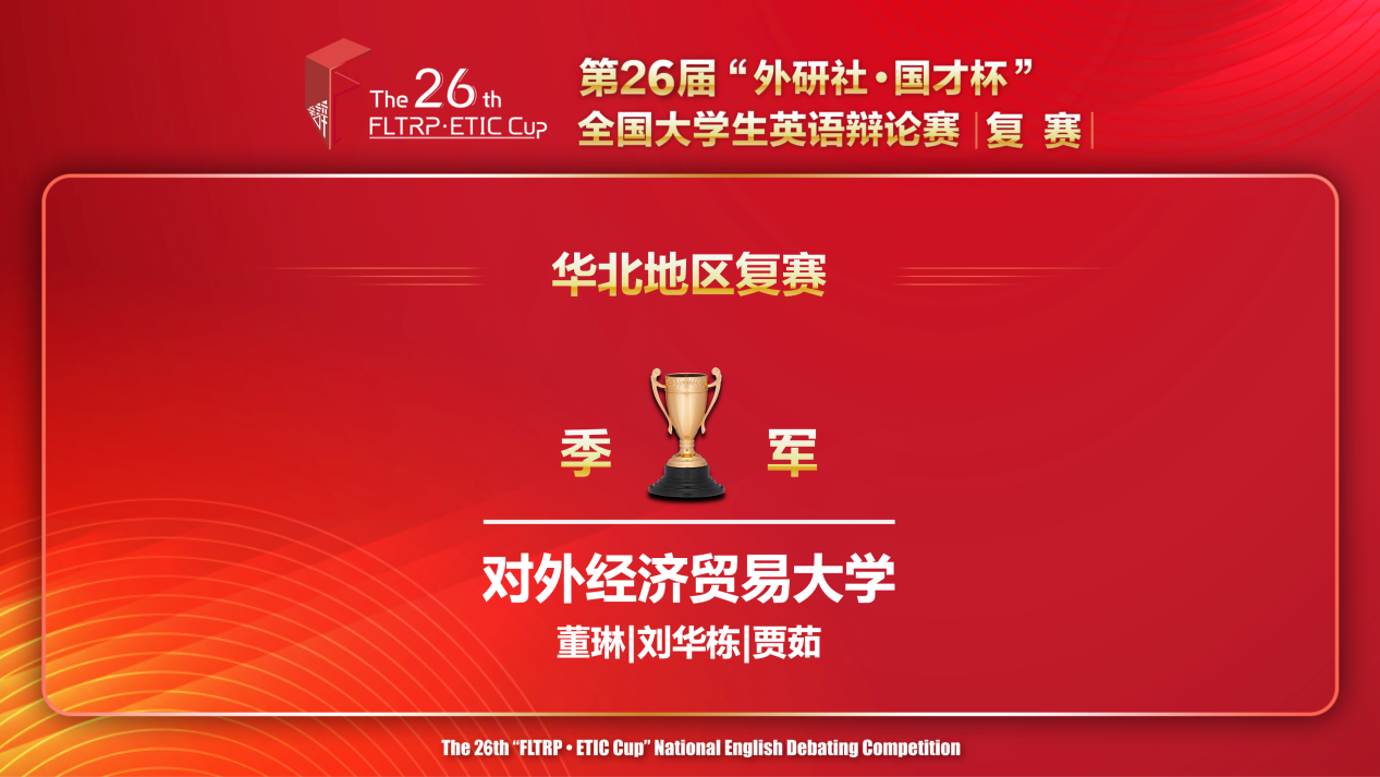 (图:第26届“外研社·国才杯”全国大学生英语辩论赛华北赛区复赛季军公布)