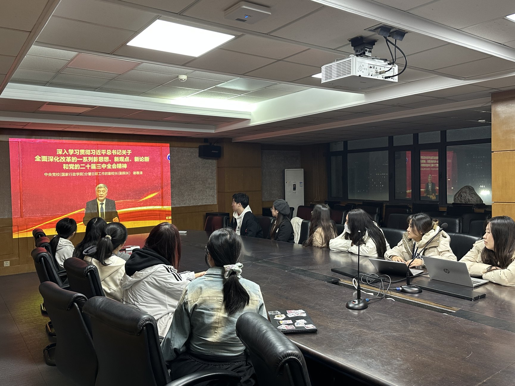 为深入学习贯彻习近平总书记关于全面深化改革的一系列新思想、新观点、新论断和党的二十届三中全会精神,水果派解说 本科生联合党支部组织学生党员于11月24日在诚信1314集体观看《学习贯彻党的二十届三中全会精神专题辅导课》,学习领会全会精神,并进行学习体会讨论分享。