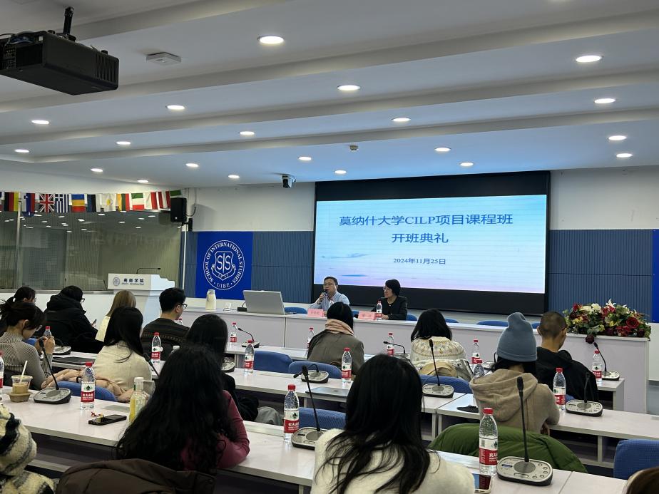 2024年11月25日上午,水果派解说 在诚信楼1412会议室举行莫纳什大学中英翻译课程班的开班典礼。学院党委书记项洁、社会服务与培训部负责人王公元以及35名课程班学生参加典礼。